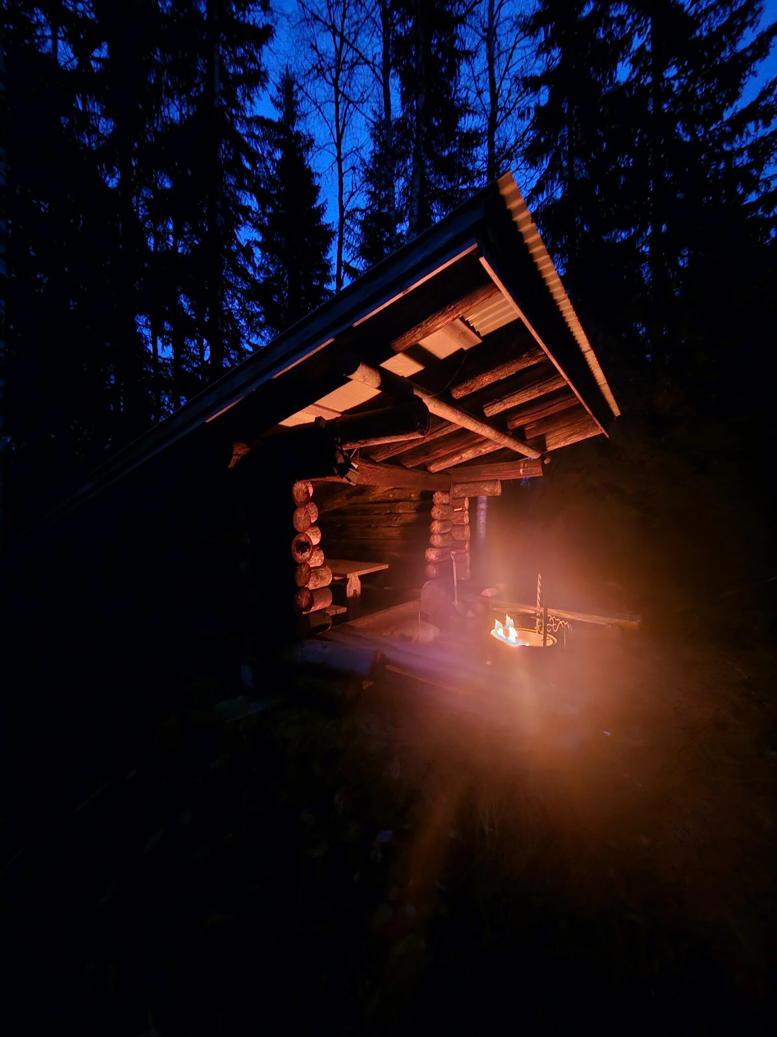 2 yön majoitus tunnelmallisessa perinteisessä hirsimökissä, jossa aika pysähtyy ja mieli rauhoittuu.